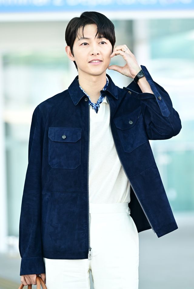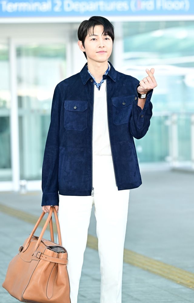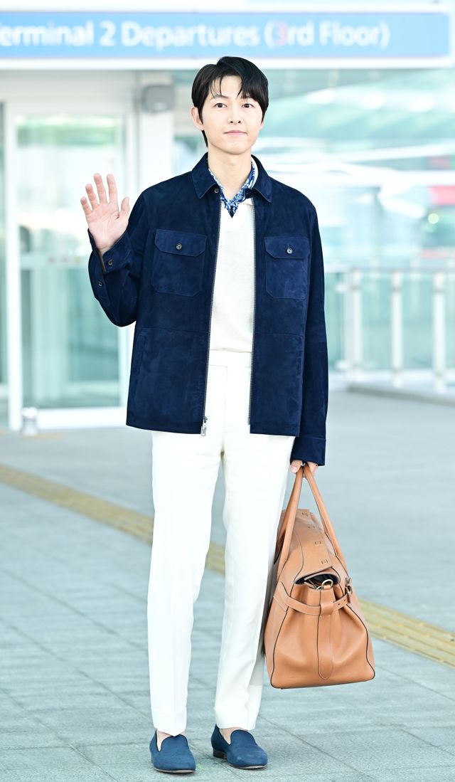 1일 오전, 배우 송중기가 랄프 로렌에서 진행하는 ‘스프링 2025 리씨 패션 익스페리언스’ 이벤트 참석차 인천공항을 통해 중국 상하이로 출국했다. 이날 송중기는 클래식한 공항패션을 선보여 눈길을 끌었다.