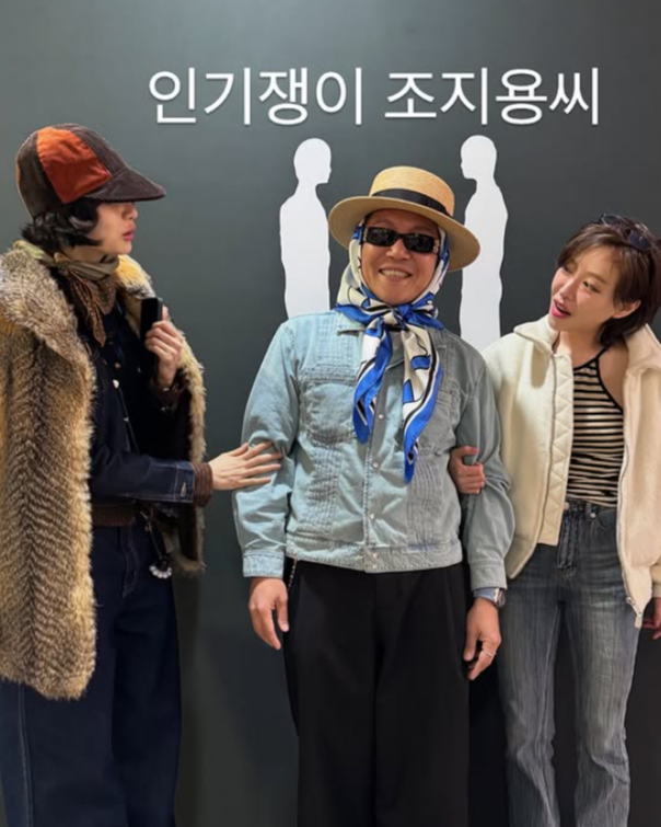 특히 그중 조세호, 가인과 함께 찍은 사진이 눈길을 끈다. 사진 속 조세호는 최근 지드래곤이 선보였던 스카프 패션을 따라 스카프를 머리에 두른 채 밀짚모자와 선글라스로 패셔니스타의 면모를 드러냈다.