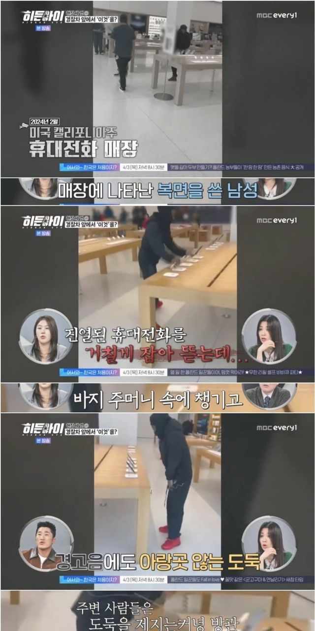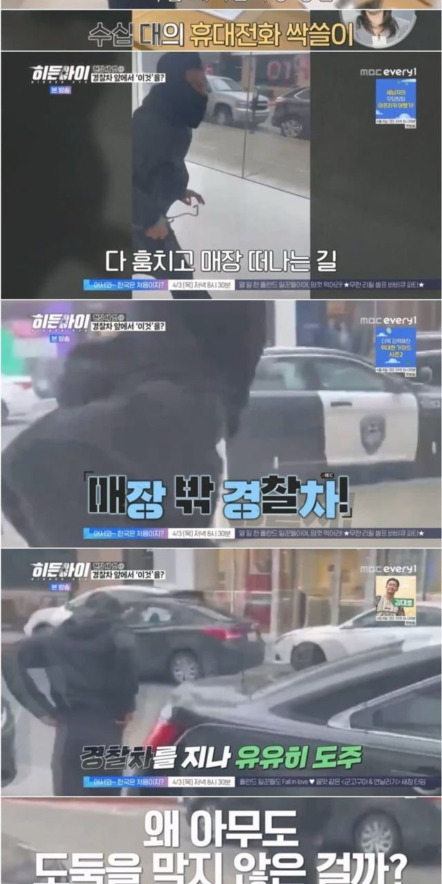 매장 앞에 경찰차가 주차되어있었지만 아랑곳하지않고 훔쳐간 미국 도둑