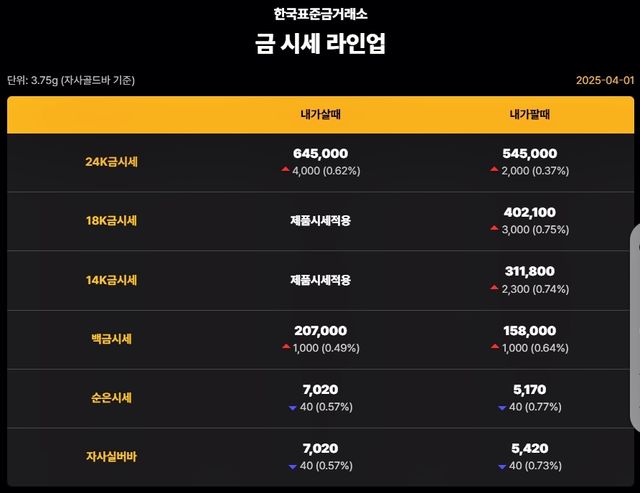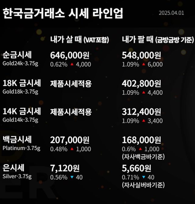 순금(24K) : 매입가 64만 6000원 / 매도가 54만 8000원