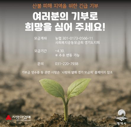 또한, “이번 기부를 계기로 더 많은 시민이 관심을 가지고 동참해 주기를 기대한다”라며 “복구가 완전히 이뤄질 때까지 지역사회가 지속적으로 힘을 보탤 수 있도록 다양한 방안을 검토 중”이라고 전했다.