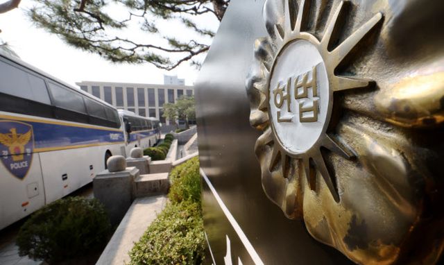 경찰은 1일 오후 헌재 100m 내를 외부인이 접근하지 못하도록 ‘진공상태’로 만드는 작업에 조기 착수했다. 경찰은 인도와 차도에 차벽을 세우고 헌재 100m 내 행인들을 외부로 이동시켰다. 경찰은 폴리스라인을 꼼꼼히 설치하는 등 인파의 출입을 적극 통제하고 있다.
