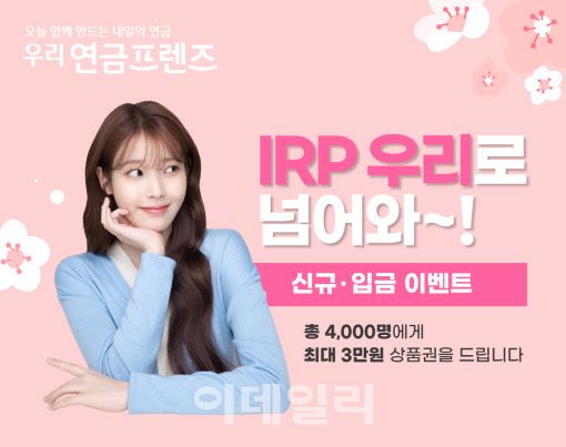 이번 이벤트는 신규고객과 입금고객으로 구분해 동시에 진행되며, ‘우리WON뱅킹 ▷혜택 ▷혜택·이벤트 ▷IRP 우리로 넘어와’을 통해 참여 가능하다. 이벤트 응모 고객 중 추첨을 통해 △IRP 신규시 상품권 1만원(2000명) △IRP 입금시 1~3만원 상품권(2000명) 등 총 4000명에게 배달의 민족 상품권을 증정한다.