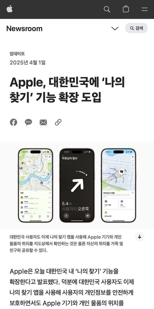 애플, 대한민국에 ‘나의 찾기’ 기능 확장 도입