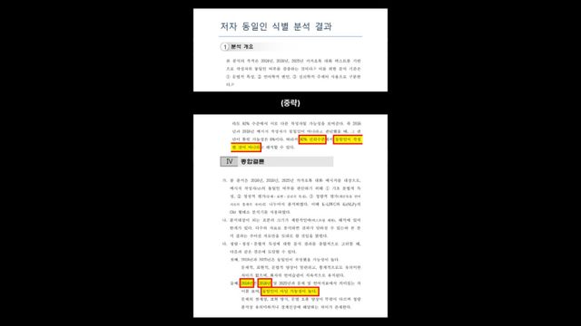 김수현은 “저는 이 사실을 증명하고자 유족이 제출한 2016년과 2018년, 그리고 올해 제가 지인들과 나눈 카톡을 과학적으로 진술을 분석하는 검증 기관에 제출했다. 그 결과, 해당 기관은 보시는 것처럼 2016년과 2018년의 인물이 같은 사람이 아니라는 결론을 내렸다”며 ‘저자 동일인 식별 분석 결과’ 자료를 공개했다.