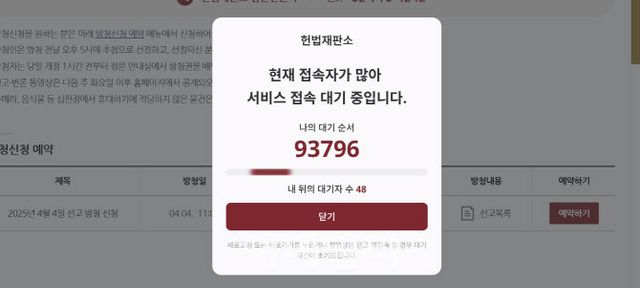 1일 헌법재판소는 윤 대통령에 대한 선고일을 발표하고 오후 4시부터 홈페이지를 통해 방청 신청을 받기 시작했다.