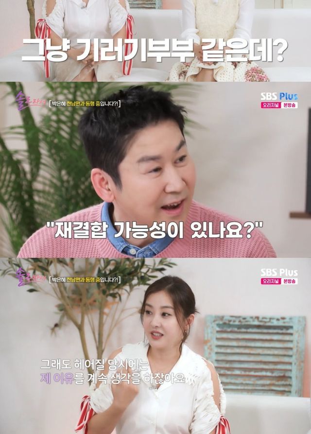 이어 박은혜가 "이혼 후에도 아이들과 넷이서 종종 밥을 먹었다. 그러니 아이들이 헷갈려하더라"라고 하자 신동엽은 "재결합 가능성이 있냐"라고 물었다.