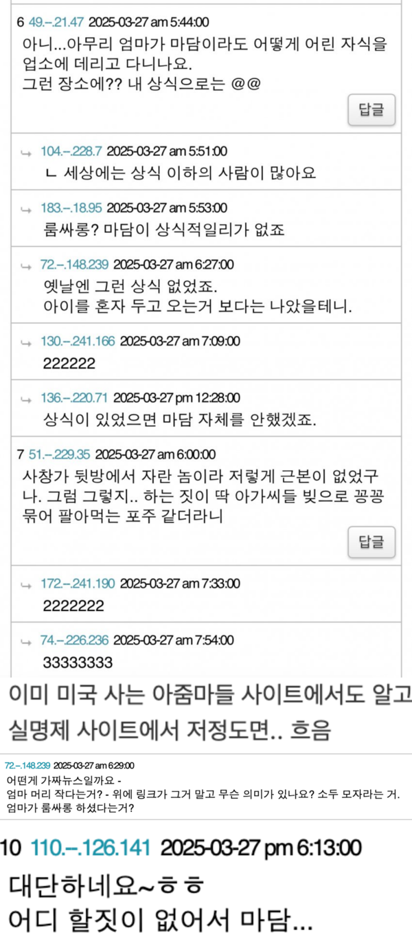 한편 이번 논란과 함께 김수현의 사생활에 대한 대중의 관심이 과열되자 일부에서는 지나친 가족사 캐기와 사생활 침해를 우려하는 목소리도 나오고 있다. 이와 함께 김수현 엄마 룸싸롱 목격담까지 가세해서 온라인 커뮤니티에서 화제가 되고 있는 상황이다.