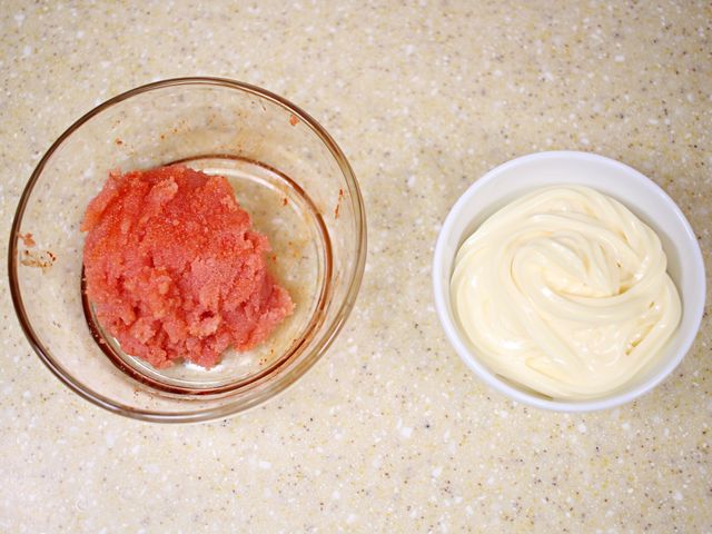명란과 마요네즈를 1:1 비율로 섞어요.