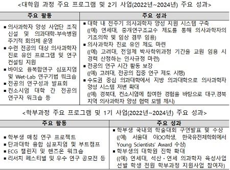 경북대는 컨소시엄 참여 경험을 바탕으로 대구·경북 지역 의사과학자 양성 협력 모델을 제시하는 등 수도권 중심 의과대학에서 지방 의과대학으로 의사과학자 양성 시스템이 확산되고 있다.