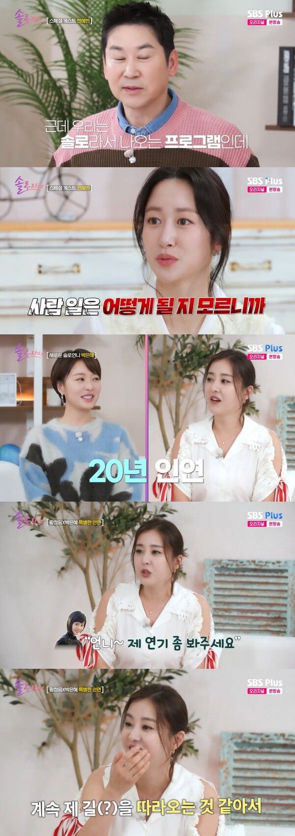 [메디먼트뉴스 김수현 기자] 배우 전혜빈이 SBS Plus·E채널 예능 프로그램 '솔로라서'에 스페셜 게스트로 깜짝 등장했다. 1일 방송된 '솔로라서' 13회에서 전혜빈은 황정음과의 특별한 인연을 공개하며 솔직한 입담을 뽐냈다.