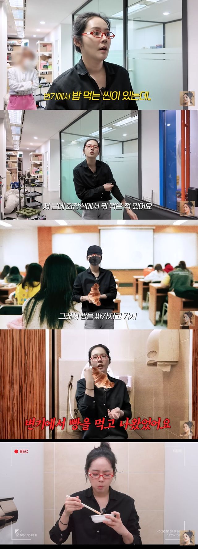 한가인은 "첫째 딸 임신했을 때 영어 학원을 다니고 있었다. 속이 비면 입덧이 있다. 되게 사람이 많은 영어학원이어서 마스크랑 모자를 벗고 먹을 수 없겠더라. 빵을 싸 가서 화장실 가는 척하고 변기에서 빵을 먹고 나왔다"고 고백했다.