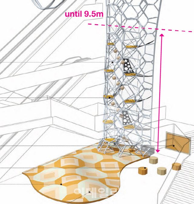 대우건설은 분양 당시 “세계적인 공간기획 전문설계사인 네덜란드 CARVE가 대형 체험형 놀이터, 이벤트광장 등을 디자인해 지금까지 볼 수 없던 새로운 형태의 상업시설로 꾸며질 예정”이라고 홍보한 바 있다. 견본주택을 방문하는 고객들에 CARVE가 설계했던 싱가포르 창이공항 영상을 보여주며 ‘상가 내부에는 어린이들이 타고 오르내릴 수 있는 타워와 그네 등 특화시설물을 설치할 것이다’라고 설명했다.