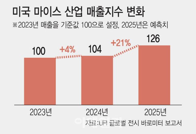 [이데일리 이민하 기자] 미국의 올해 관련 전시·박람회 산업 부문 매출이 21%가량 급등할 것이라는 전망이 나왔다. 지난해 매출 증가분 4%(2023년 대비)의 5배, 올해 전 세계 전시·박람회 산업 부문 예상 매출 증가율 18%보다 3%포인트(p) 높은 수치다.