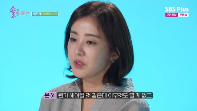 1일 방송된 SBS Plus·E채널 예능 '솔로라서' 13회에서는 배우 박은혜가 출연해 리얼 일상을 선보였다.