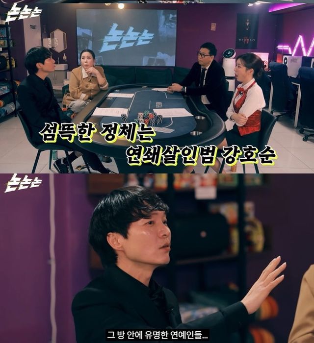 강호순의 사진 요청에 신정환은 운동도 나가지 않았다고. 이어 "배식해 주는 사람한테 물어봤더니 방 안에 웬만한 연예인들을 연필로 그린 초상화가 온 벽에 있다더라. 그중에 내 사진도 그리려고 했던 것"라고 말해 소름을 자아냈다.