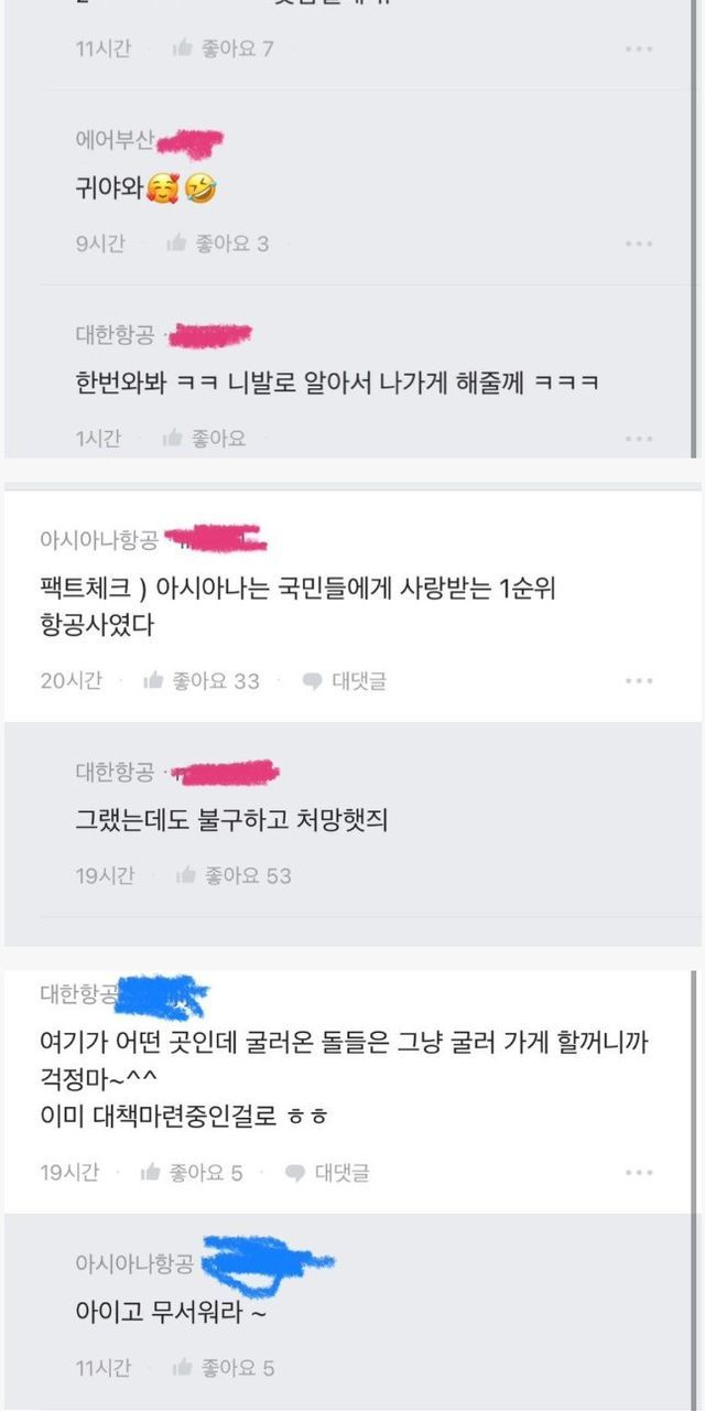 블라인드에서 싸움난 대한항공, 아시아나 직원들