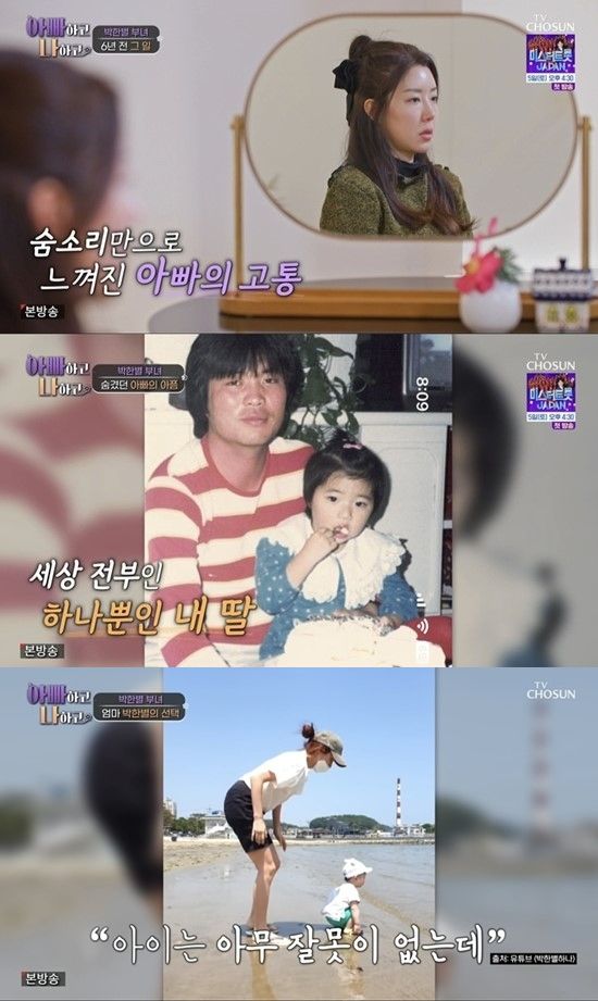 이에 대해 박한별은 "아빠가 많이 힘들어하셨다. 밤마다 술 드시고 전화하셔서 한숨만 푹 쉬셨다. 말 한마디 안 해도 숨소리만으로 고통이 느껴졌다"라고 기억했다.
