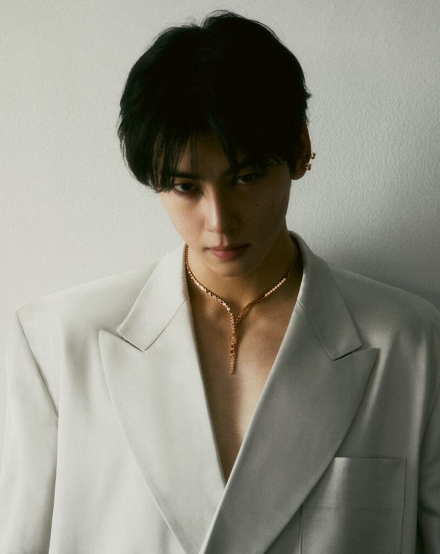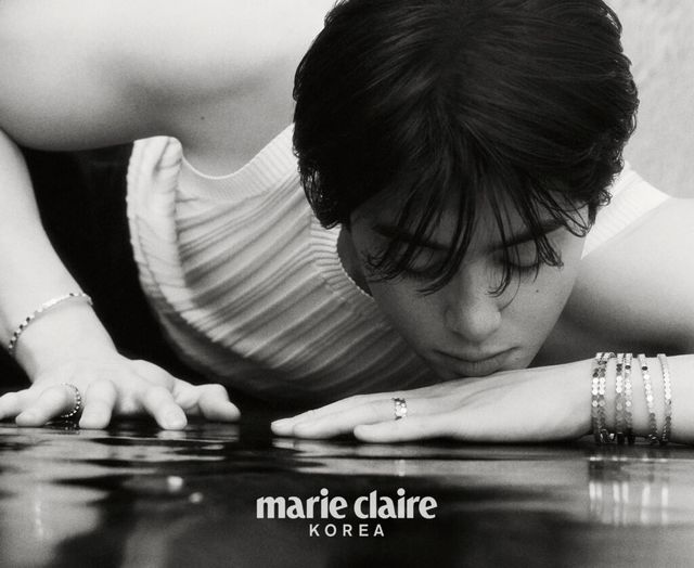 다이아몬드로 우아함을 더한 비 드 쇼메 이어 커프, 오른손 검지와 약지의 로즈 골드 비 드 쇼메 링, 약지의 브릴리언트 컷 다이아몬드를 각각 하프 파베, 풀 파베 세팅한 화이트 골드 비 드 쇼메 링, 왼손 소지의 브릴리언트 컷 다이아몬드를 세팅한 화이트 골드 비 드 쇼메 링 모두