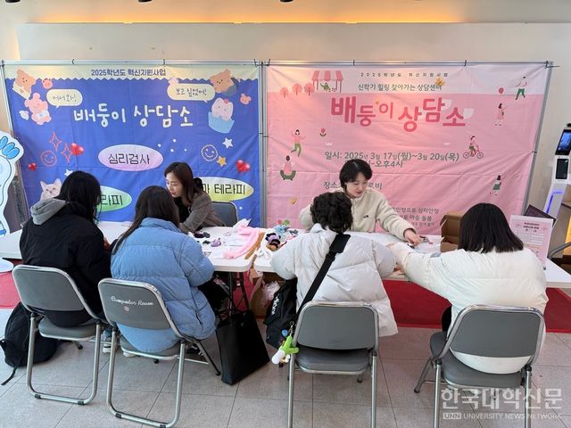 [한국대학신문 심정은 기자] 배화여자대학교(총장 이후천) 학생상담센터에서는 2025학년도 신학기를 맞이해 재학생을 대상으로 신학기 힐링 찾아가는 ‘배둥이 상담소’를 운영했다. 배둥이 상담소는 지난달 17일부터 21일까지 배화여대 정심관 로비에서 진행했다.