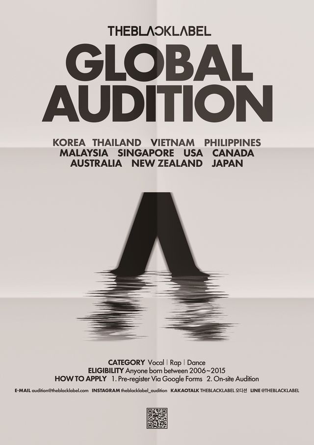 더블랙레이블이 새로운 식구를 찾습니다. 오디션 접수는 4월 1일부터 시작했습니다. 국적 상관없이 2006년부터 2015년 출생자를 대상으로 하고요. 4월 19일 서울을 시작으로 태국(방콕), 베트남(호치민), 필리핀(마닐라), 말레이시아(쿠알라룸푸르), 싱가포르, 미국(엘에이, 오렌지카운티), 캐나다(토론토, 밴쿠버), 호주(시드니, 멜버른), 뉴질랜드(오클랜드), 일본(도쿄) 등 총 11개국 14개 도시를 방문해 인재를 발굴할 예정입니다. 오디션 최종 합격자는 더블랙레이블의 연습생으로 트레이닝 과정을 시작하게 됩니다.