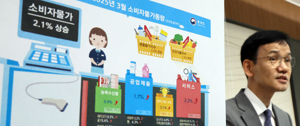 하지만 최근 환율 급등과 미국의 관세 정책 등이 물가 상승 압력을 자극하면서 올해 들어서는 1월(2.2%), 2월(2.0%), 3월(2.1%) 3개월 연속 2% 대를 이어가고 있다.