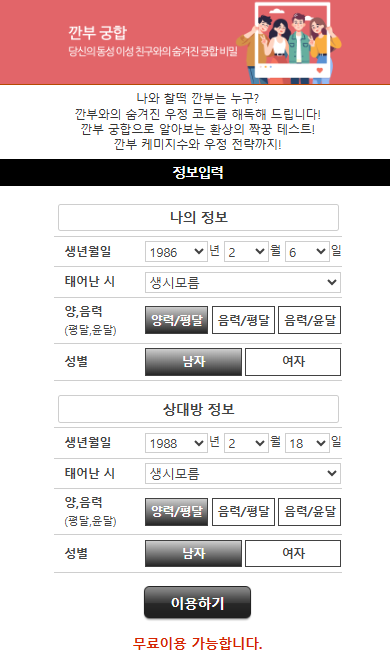 궁합이 100% 맞아 떨어지는 사람은 없지만, 서로의 차이를 이해하고 조화롭게 지내는 것이 중요하다. 나와 딱 맞는 인연이 궁금하다면 무료 궁합을 확인해보자.