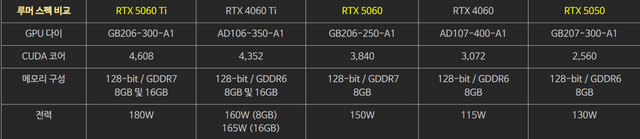 그나마 5060은 4060대비 쿠다코어 갯수가 유의미하게 증가하긴 했군요...