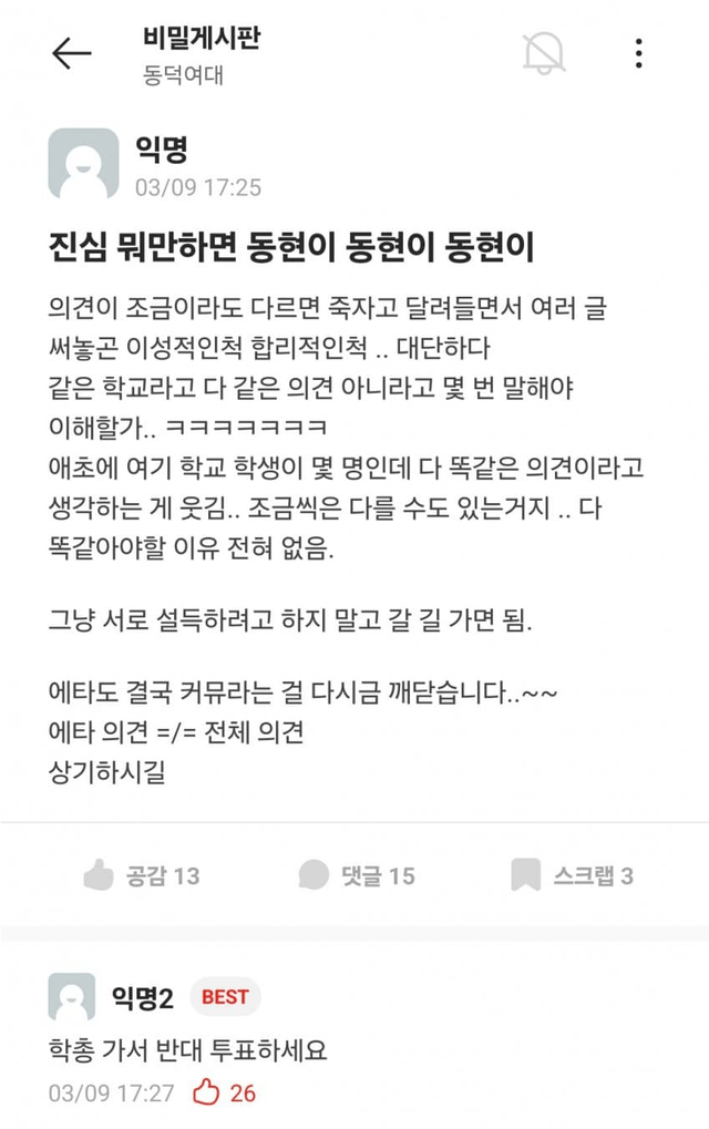 새내기들보고 불만있으면 학총와서 거수투표해라 시전중 ㄷㄷ
