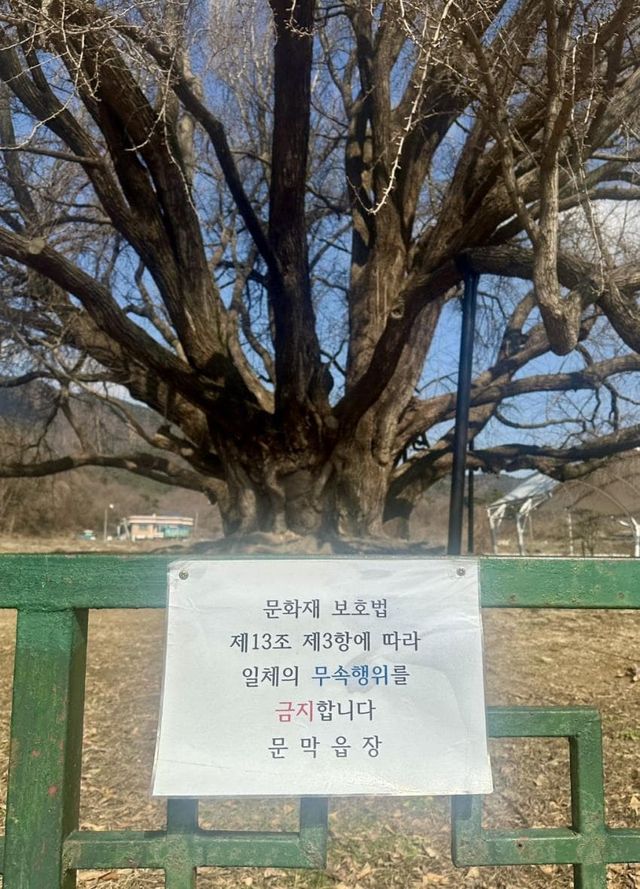 싱글벙글 나무가 너무 영험하게 생겨서 붙여진 경고문