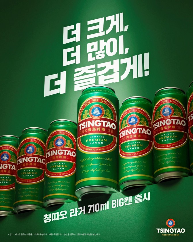 이번 칭따오 710㎖ 빅캔은 맥주 한 캔으로도 넉넉하게 즐기고 싶은 소비자들의 니즈를 적극 반영해 출시했다. 500㎖ 한 캔은 부족하고 두 캔은 부담스러웠던 소비자들에게 적합한 용량으로, 기존 라거의 맛과 품질은 그대로 유지하면서 용량을 더욱 확대해 칭따오 라거의 신선하고 청량한 맛과 시원한 목 넘김을 더 오래 즐길 수 있다.