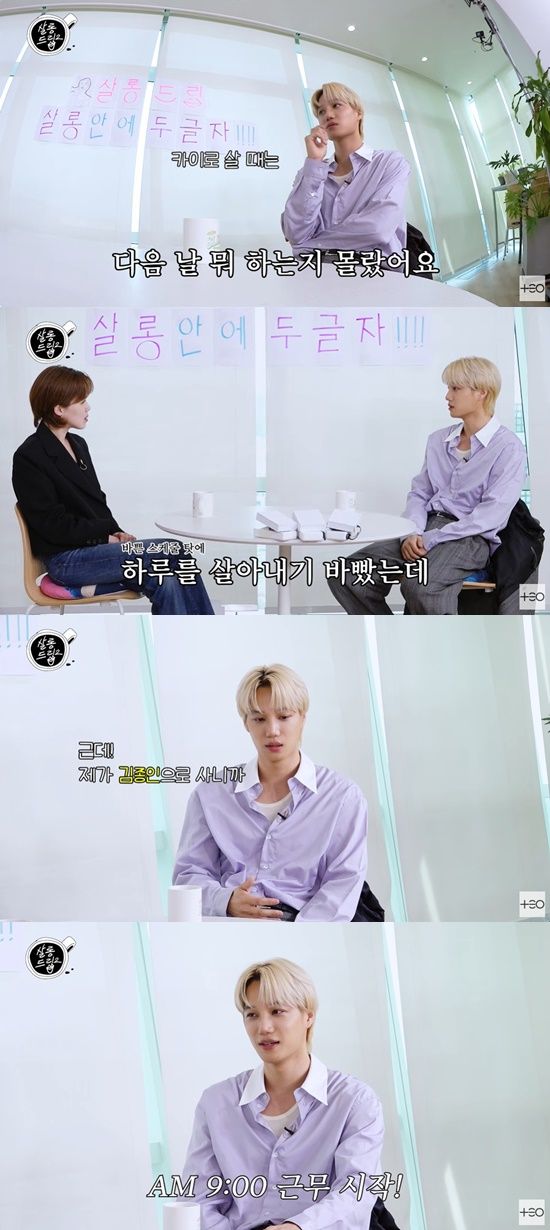 2년 간 사회복무요원으로 대체복무를 한 카이는 인간 김종인으로 살면서 깨달았던 게 무엇이냐는 말에 "카이로서 살 때는 다음 날 뭐 하는지 몰랐다. 스케줄이 바빠서 당장의 하루를 사는데 급급했다. 그런데 김종인으로 사니까 굉장히 계획적으로 살게 되더라"고 입을 열었다.