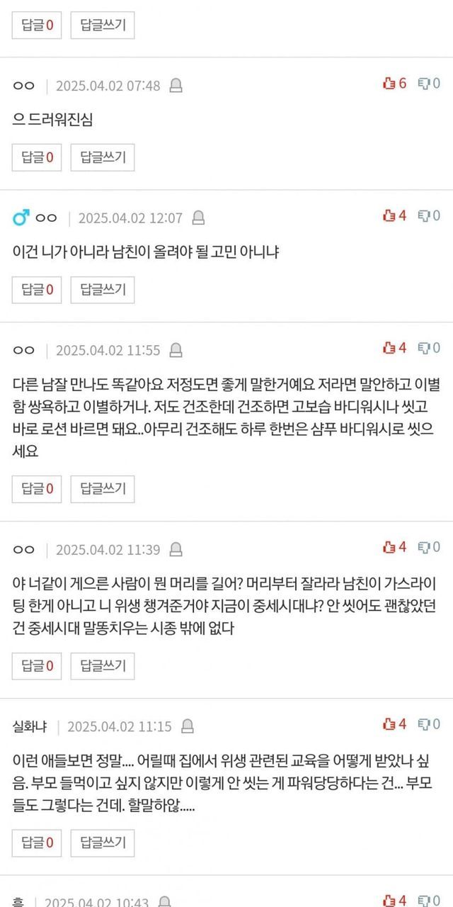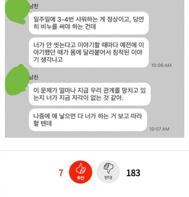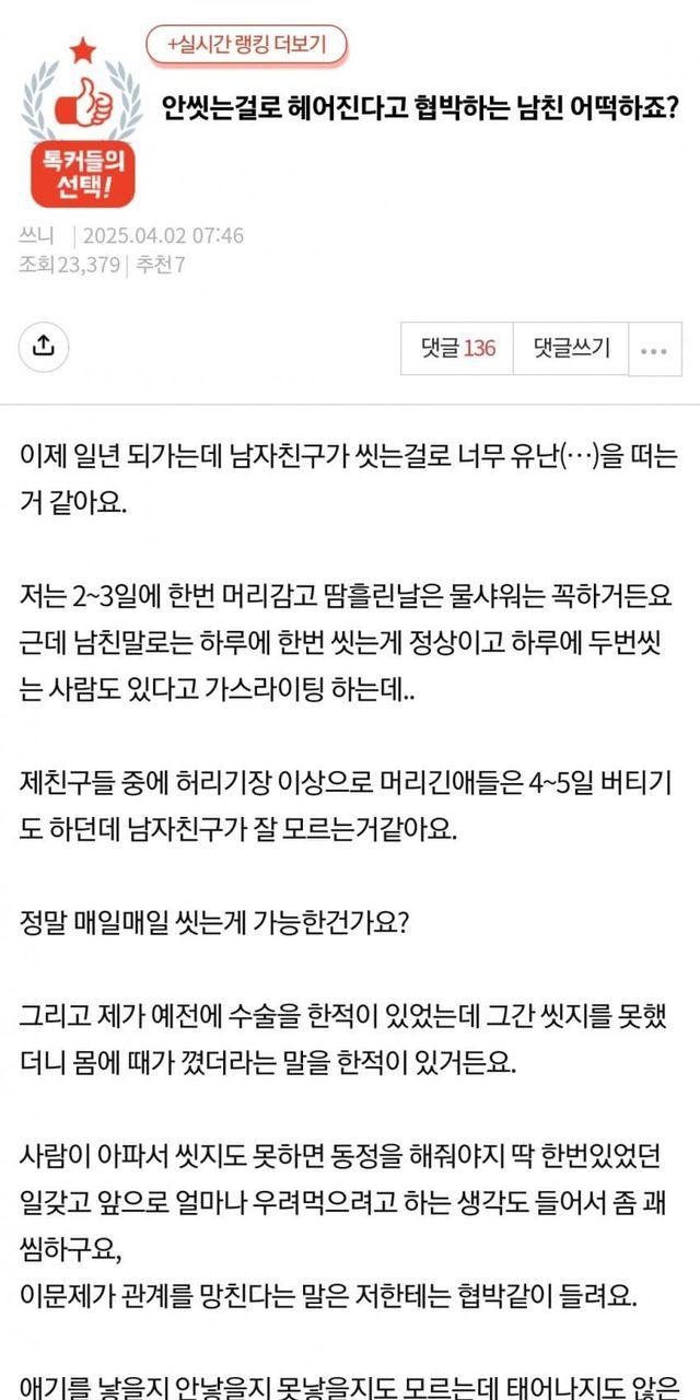 안씻는걸로 헤어진다고 협박하는 남친 어떡하죠?
