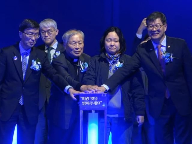 2일 서소문성지 역사박물관 콘솔레이션홀에서 열린 세계 자폐인의 날 기념식, 약 420명의 참석자들이 한목소리로 “5, 4, 3, 2, 1”을 외치자 행사장 곳곳이 파란 빛으로 물들기 시작했다. 저마다 ‘사랑과 이해’라 쓰인 파란색 하트 응원봉을 손에 들고 흔들며 객석은 파란 빛의 파도로 넘실거렸다. 몇몇은 준비해온 파란색 모자를 꺼내쓰며 환호성을 지르는 모습이었다.