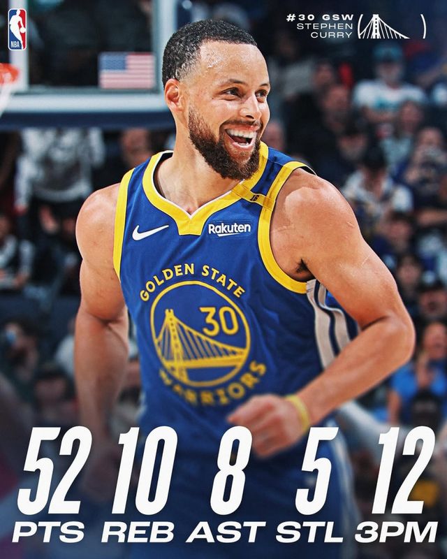 커리는 2일(한국시간) 미국 테네시주 멤피스의 페덱스 포럼에서 열린 멤피스 그리즐리스와의 2024~25 NBA 정규리그 원정 경기에서 선발 출전, 36분 31초 동안 무려 52점을 몰아쳤다. 팀은 134-125로 이기며 3연승을 질주, 서부콘퍼런스 5위(44승 31패)를 꿰찼다. 이대로 정규리그가 끝난다면, 플레이오프(PO)에서 로스앤젤레스(LA) 레이커스와 맞붙는다.