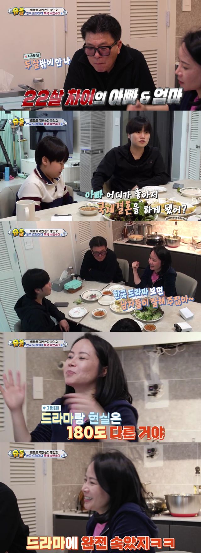 두 사람의 나이 차이는 22살. 황민우는 “아빠의 어떤 점이 좋아서 국제결혼을 결심했냐”고 물었고, 아버지가 답변하려 하자 어머니는 “내가 이야기할게”라며 즉각 제지해 웃음을 안겼다.