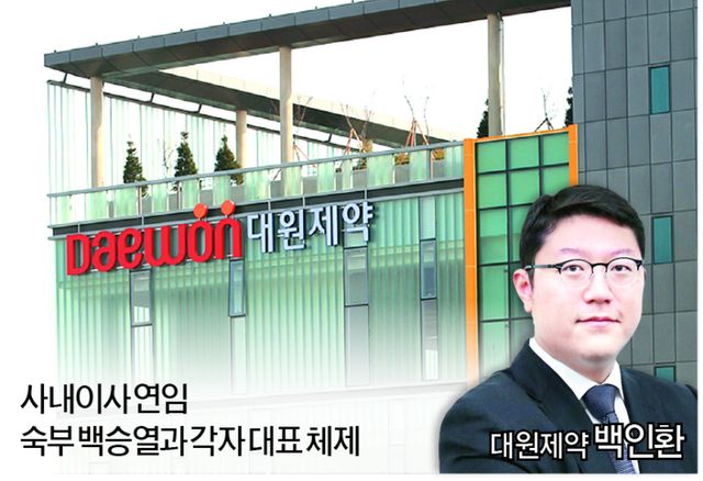 대원제약의 경우 형제의 공동 경영체제가 유지되고 있다. 숙부와 조카 관계인 백인환 대표와 백승열 부회장이 각자 대표체제를 구축하고 있다. 백 대표는 백승호 회장의 장남이다. 하지만 백 부회장의 장남인 백인영 상무도 경영에 참여하고 있어 후계자 경쟁이 완전히 마무리된 것은 아니다.
