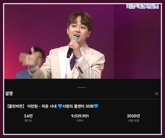 지난 2020년 10월 '미스&미스터트롯' 공식 유튜브에는 "[클린버전] 이찬원 - 미운사내. 사랑의 콜센타 30화"라는 영상이 게재됐다.
