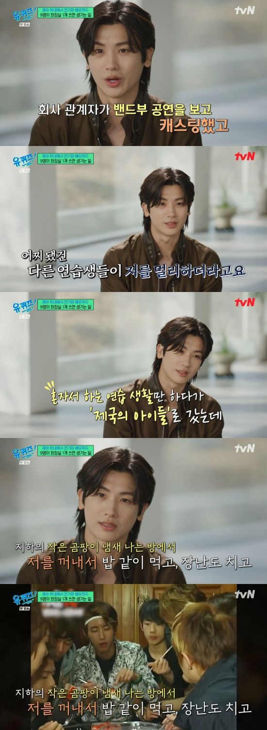 이날 박형식은 "제가 제국의 아이들 오기 전에 잠깐 머물렀던 회사가 있는데 그 회사가 처음에 저를 밴드 대회에서 캐스팅한 분이다. 저는 캐스팅이 됐고 거기 있던 연습생분들은 오디션을 보고 오신 분들도 좀 있고 이래서 어찌 보면 낙하산처럼 보일 수가 있었다, 제가"라며 연습생 시절을 회상했다.