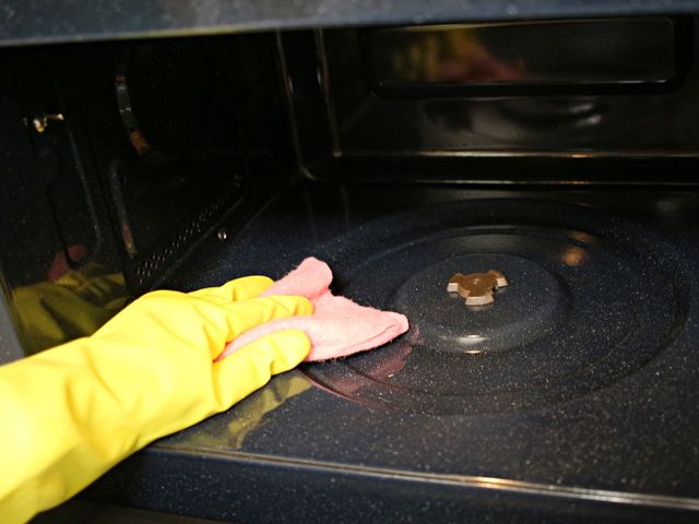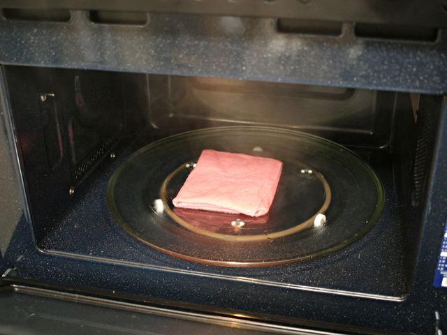 뜨끈해진 행주로 전자레인지 내부를 닦으면