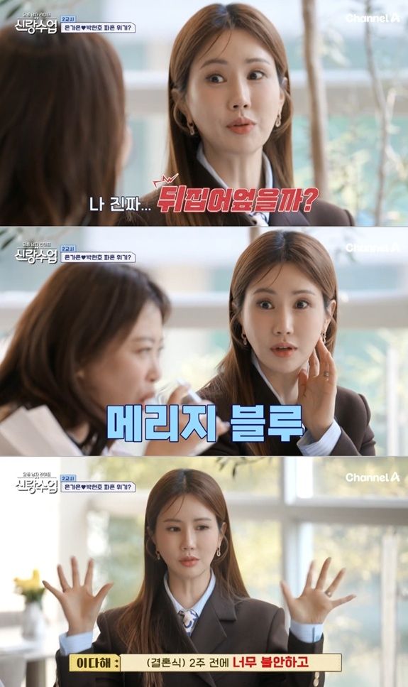 2일 방송한 채널A '요즘 남자 라이프-신랑수업'에서는 이다해가 박현호와 결혼을 앞둔 은가은을 만나 고민을 들어줬다.