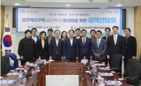 [파이낸셜경제=김영란 기자] 금천구는 4월 2일(수) 국회의원회관 제6간담회의실에서 ‘공간혁신구역(금천구 공군부대 부지) 활성화를 위한 정책간담회’를 개최했다고 밝혔다.