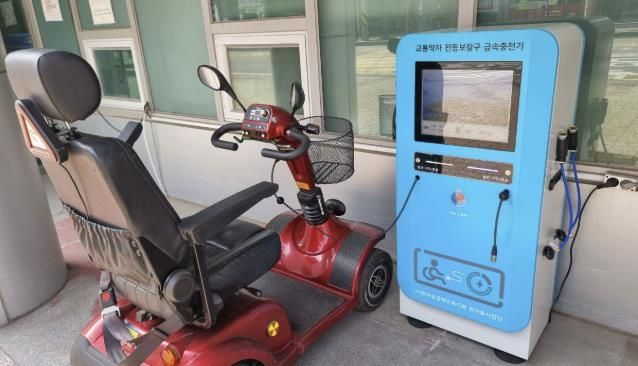 전동보조기기 급속 충전기는 전동휠체어와 전동스쿠터 등 전동보조기기 이용자라면 누구나 무료로 이용할 수 있으며, 배터리 잔량에 따라 최대 90분 이내에 완충할 수 있다. 또한, 2인이 동시에 충전할 수 있어 전동보조기기 충전 기능 외에도 휴대전화 충전, 공기주입 및 흙ㆍ먼지 털이(에어건) 청소 기능이 있어 이용자들의 활용도를 높였다.