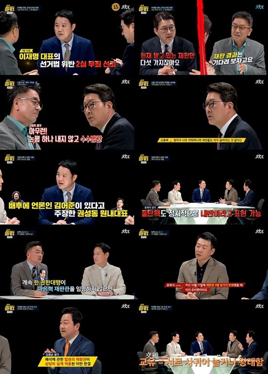 지난 2일 방송된 JTBC '특집 썰전' 최종회에서는 MC 김구라의 진행 아래 이철희 전 의원과 국민의힘 여당 수석대변인 신동욱 의원이 논객으로 출연해 치열한 논쟁을 벌였다. 더불어민주당 김한규 의원, 국민의힘 윤희석 전 선임 대변인, 조국혁신당 신장식 의원, 개혁신당 김용남 전 의원은 '여야의 밤' 코너에서 윤석열 대통령의 탄핵 심판 선고일을 앞두고 국민을 위한 호소로 시청자들을 뭉클하게 만들었다.