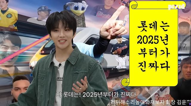 자신이 좋아하는 롯데 자이언츠에 대해 설명하고 있는 보이넥스트도어 운학 / 유튜브 Pixid 캡처