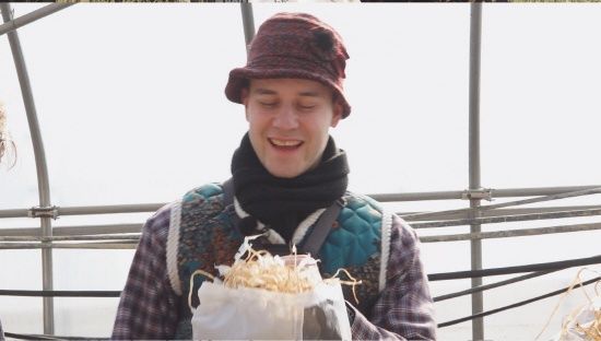 일꾼으로 고용된(?) 친구들은 엉덩이에 농사용 의자를 차고, 즉시 농사의 세계로 뛰어든다. 이들이 첫 번째로 맡은 농사일은 잡초 뽑기다.