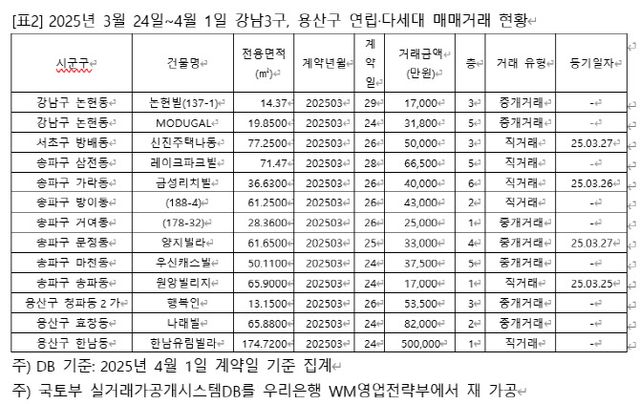 3일 우리은행 WM영업전략부에 따르면 이들이 지난 달 24일부터 4월 1일까지 9일간 토허제가 적용된 4개구의 주택 유형별 매매거래를 살펴보니 아파트보다 연립·다세대 등 비아파트 거래가 많았다.