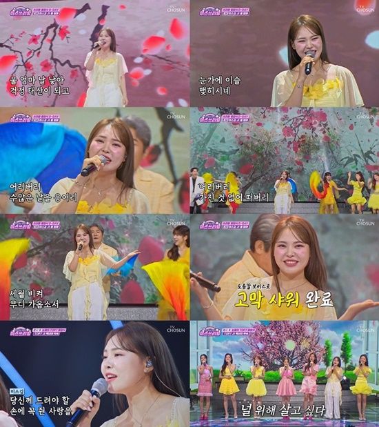 ‘미스쓰리랑’에서 미스김이 펼쳐보이는 마지막 무대는 진성의 ‘울엄마’였다. 미스김은 타고난 토종꿀 보이스로 구수하게 구성진 가락을 풀어나갔고, 특유의 파워풀한 성량과 독보적인 가창력으로 노래의 절정까지 완벽하게 소화해 관객들의 뜨거운 환호를 받았다. 특히 ‘꺾기 대결’에 나선 대표 다운 간드러진 미스김의 꺾기는 노래의 맛을 제대로 더했다.