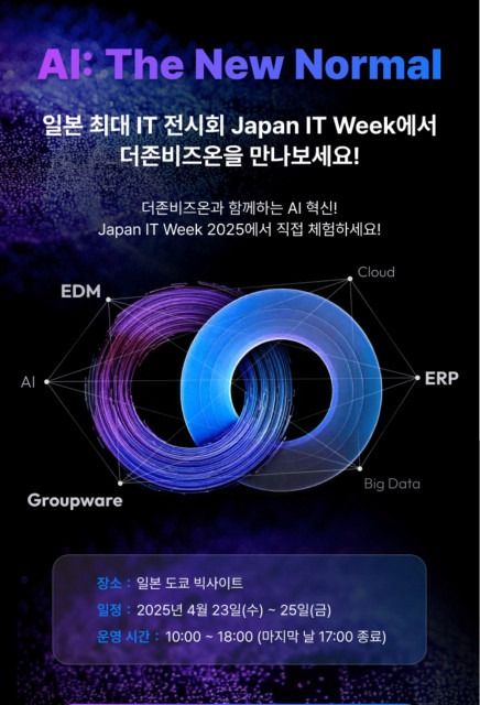 더존비즈온이 4월 23~25일 일본 도쿄 빅사이트에서 열리는 ‘Japan IT Week’에 참가해 다양한 기업용 AX 솔루션을 선보인다. 일본 법인 ‘제노랩’을 통해 올해부터 본격적인 글로벌 시장 확대에 나선 가운데 일본 최대 규모의 IT 산업 전시회에서 전 세계 SW 기업들과의 차별화 요소를 검증하고 기술력을 입증한다는 방침이다.