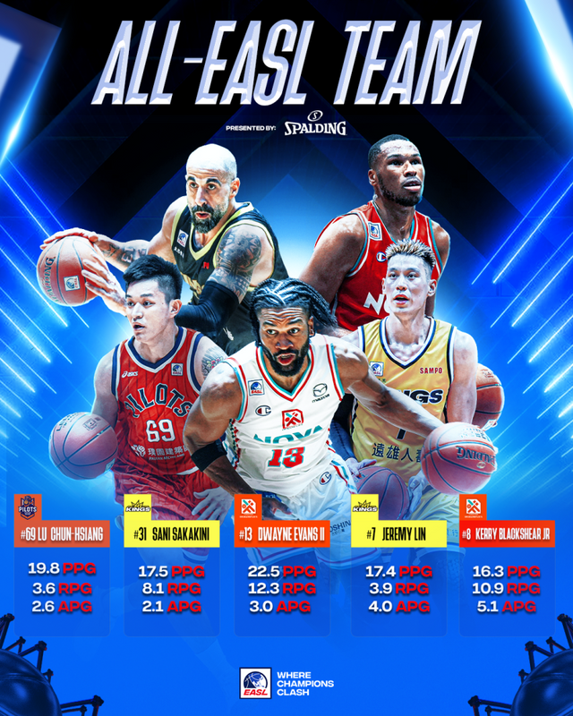 EASL은 3일 “파이널 포 2025 파이널 최우수선수(MVP)인 히로시마 드래곤 플라이즈의 포워드 드웨인 에반스가 팀 동료 케리 블랙시어 주니어와 함께 올-EASL 퍼스트 팀의 헤드라인을 장식했다. 뉴 타이베이 킹스에서는 제레미 린과 사니 사카키니가 선발됐다. 타오위안 파우이안 파일럿츠의 뛰어난 가드 루 춘샹이 마지막 자리를 차지하면서 베스트 파이브 라인업을 완성했다”라고 전했다.
